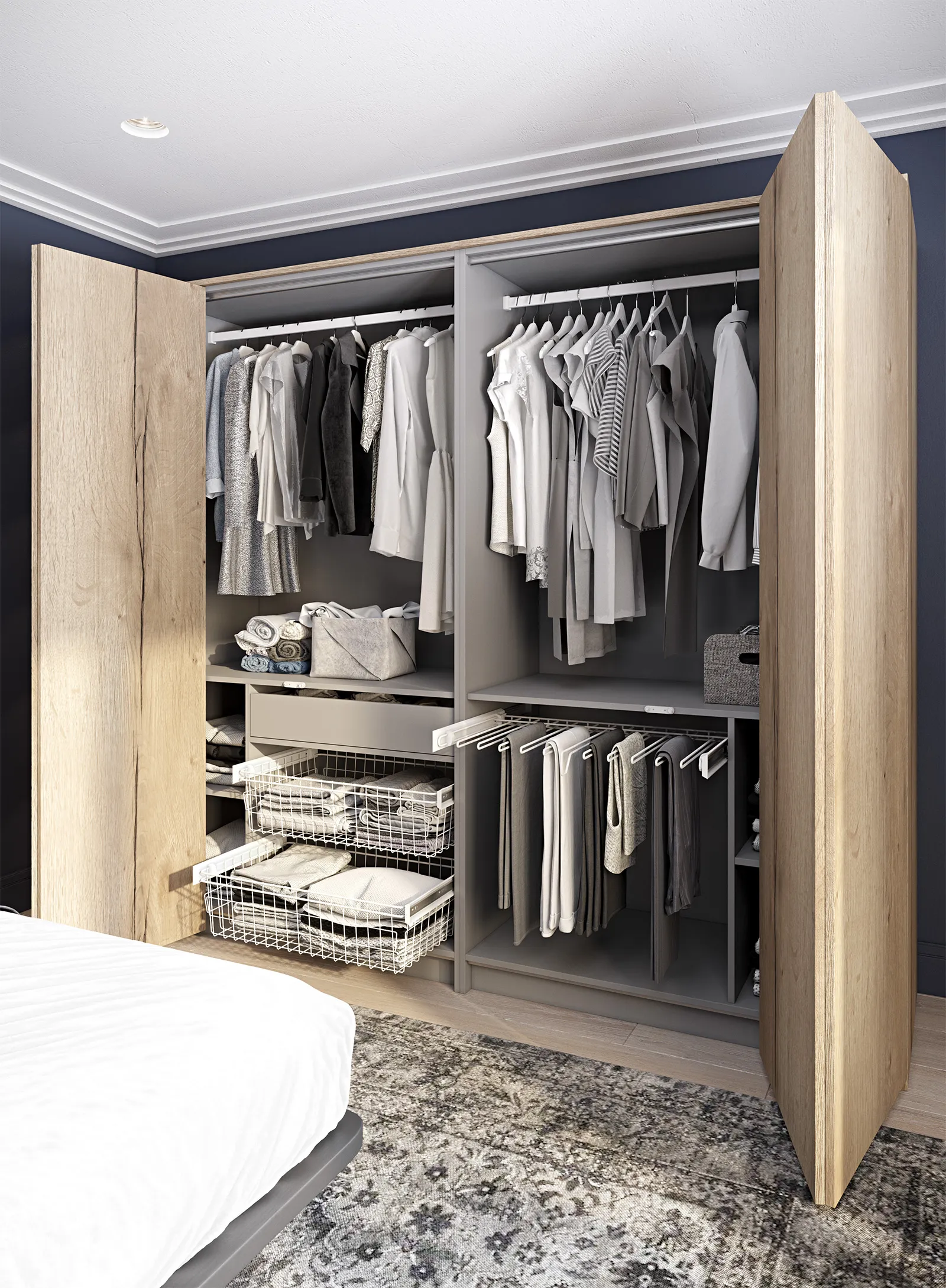 КАРКАС, ЗАДНЯЯ СТЕНКА, ПОЛКИ, ВЫДВИЖНЫЕ ЯЩИКИ ЛДСП Серый Пыльный ФАСАДЫ Тимбер Галифакс