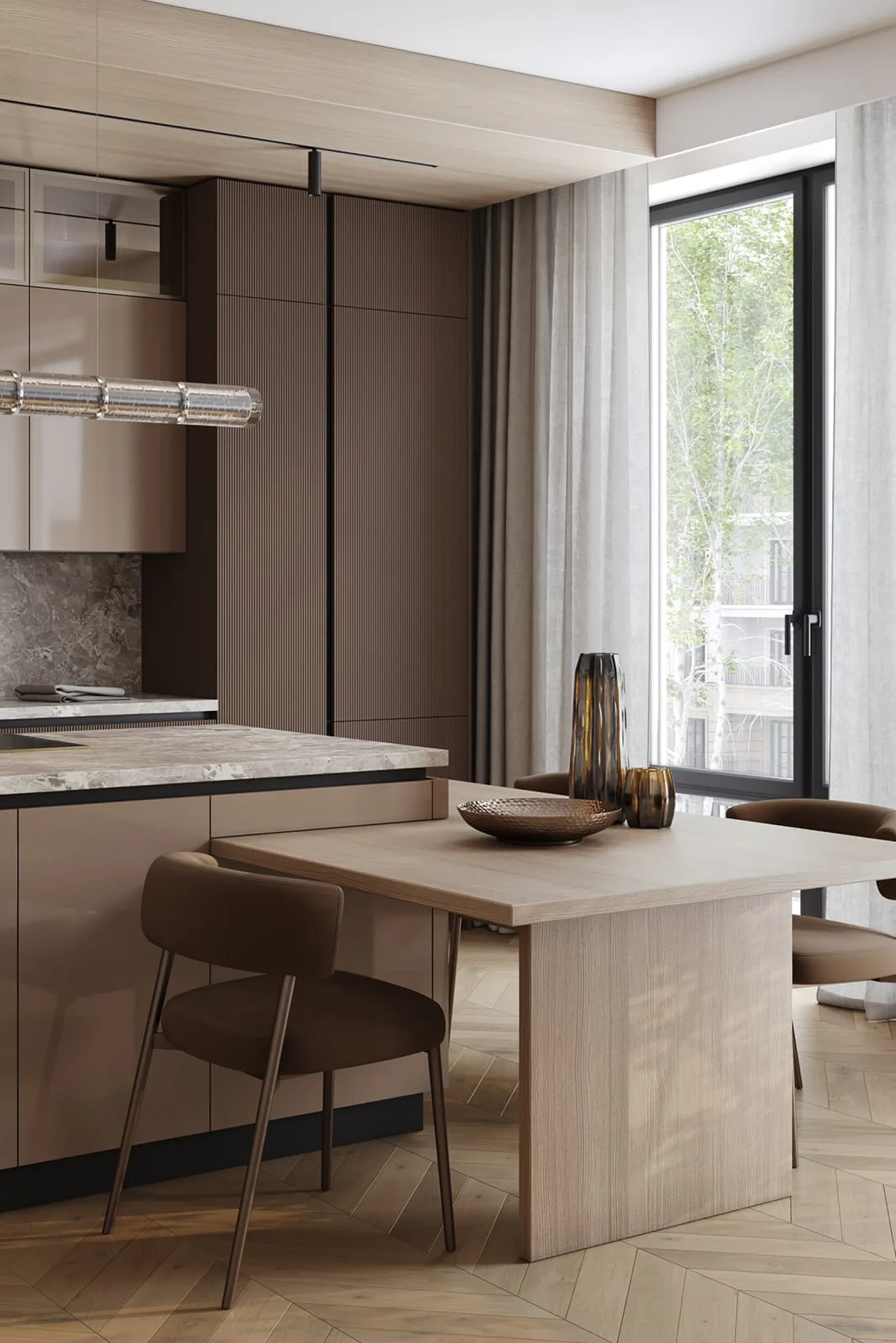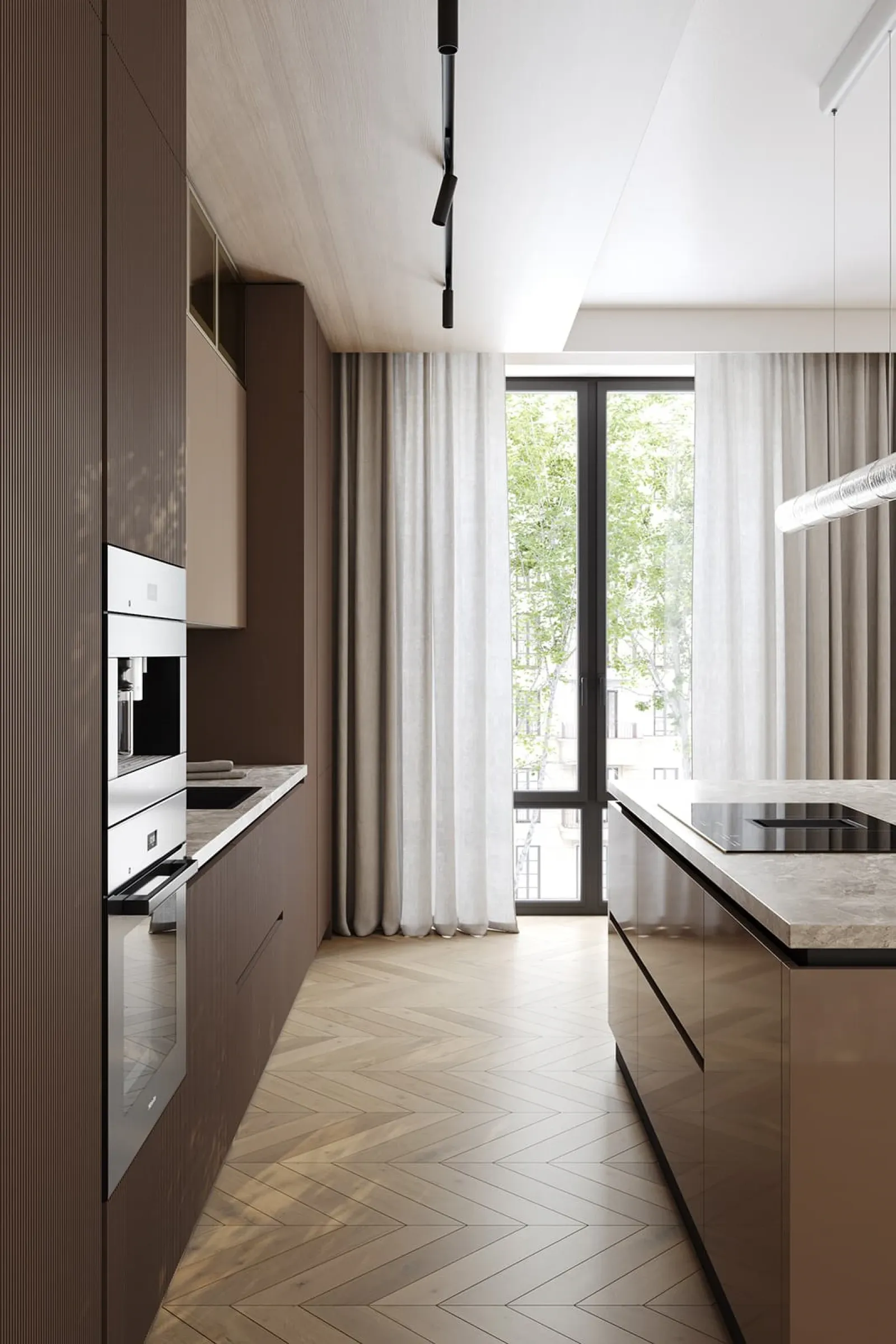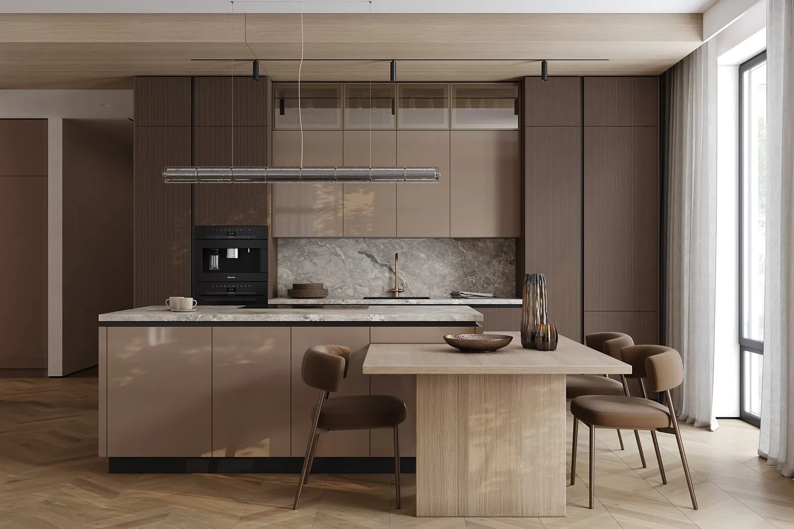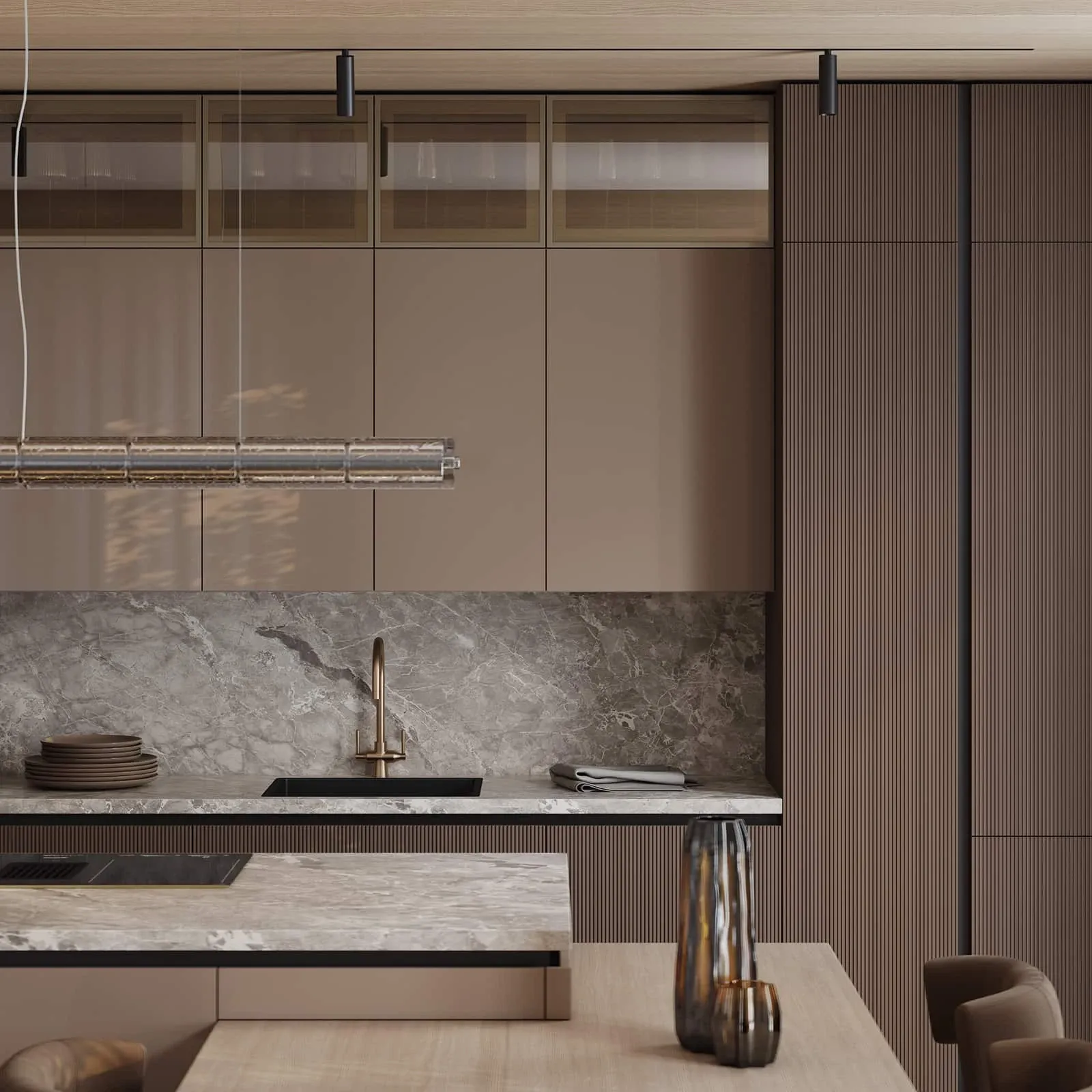 Фасады: Т645 Крашеная МДФ, цвет NCS S 6010-Y70R Матовый / крашеная МДФ, цвет NCS S 3005-Y50R Глянец