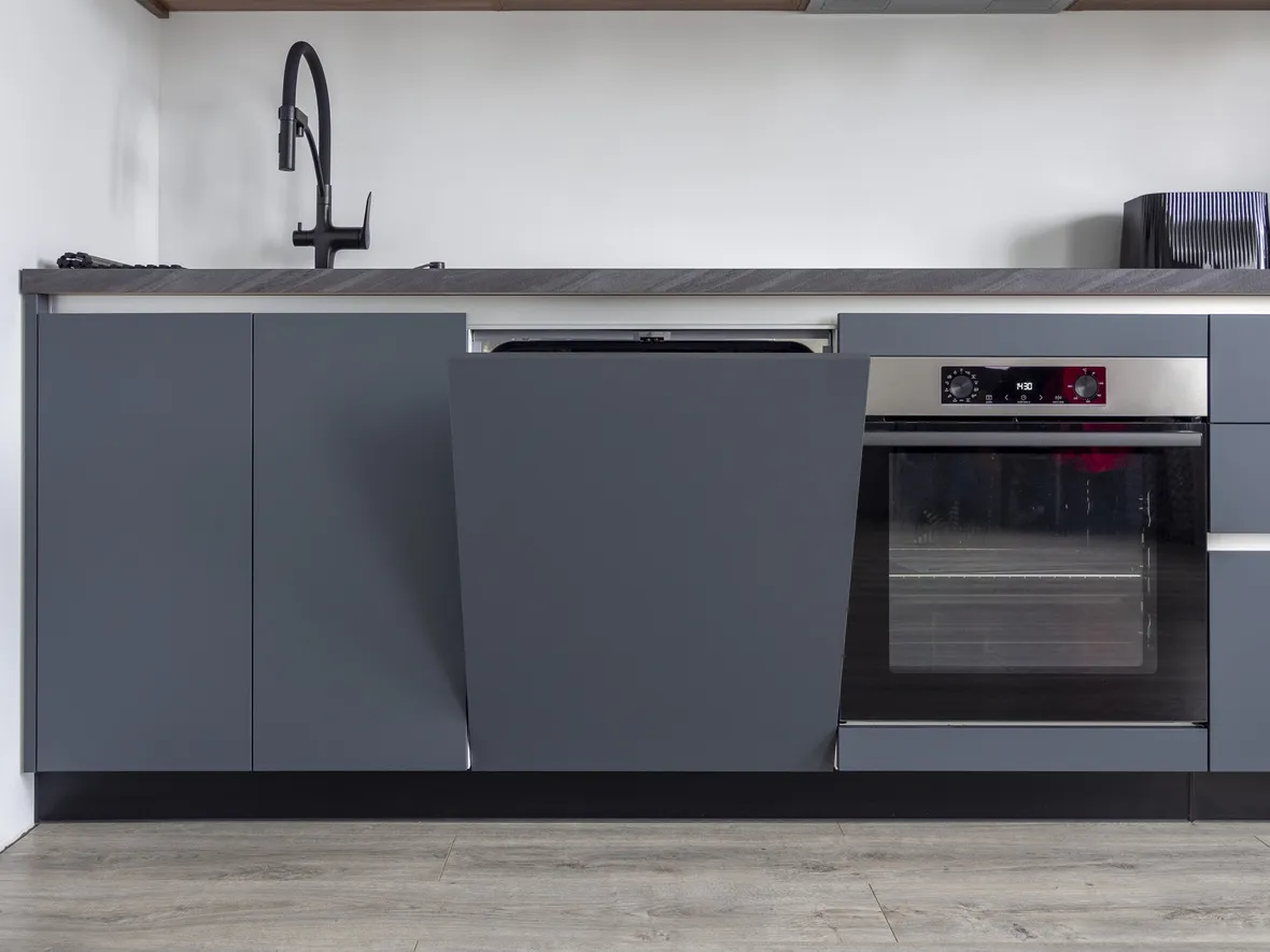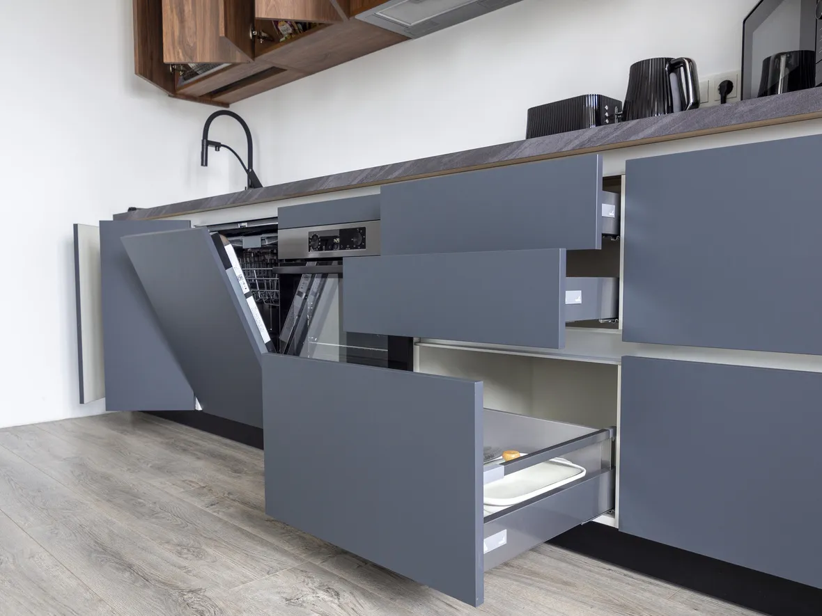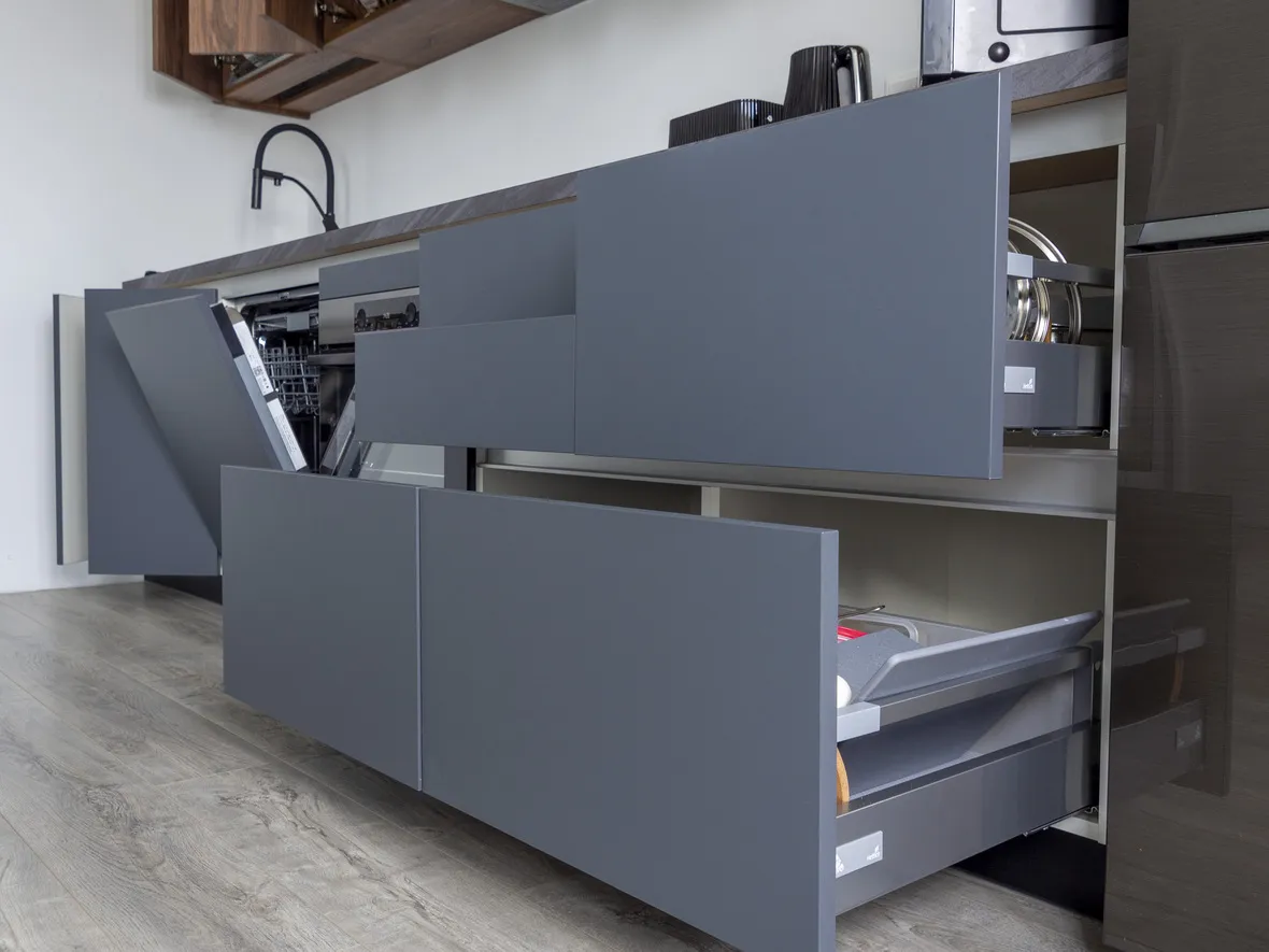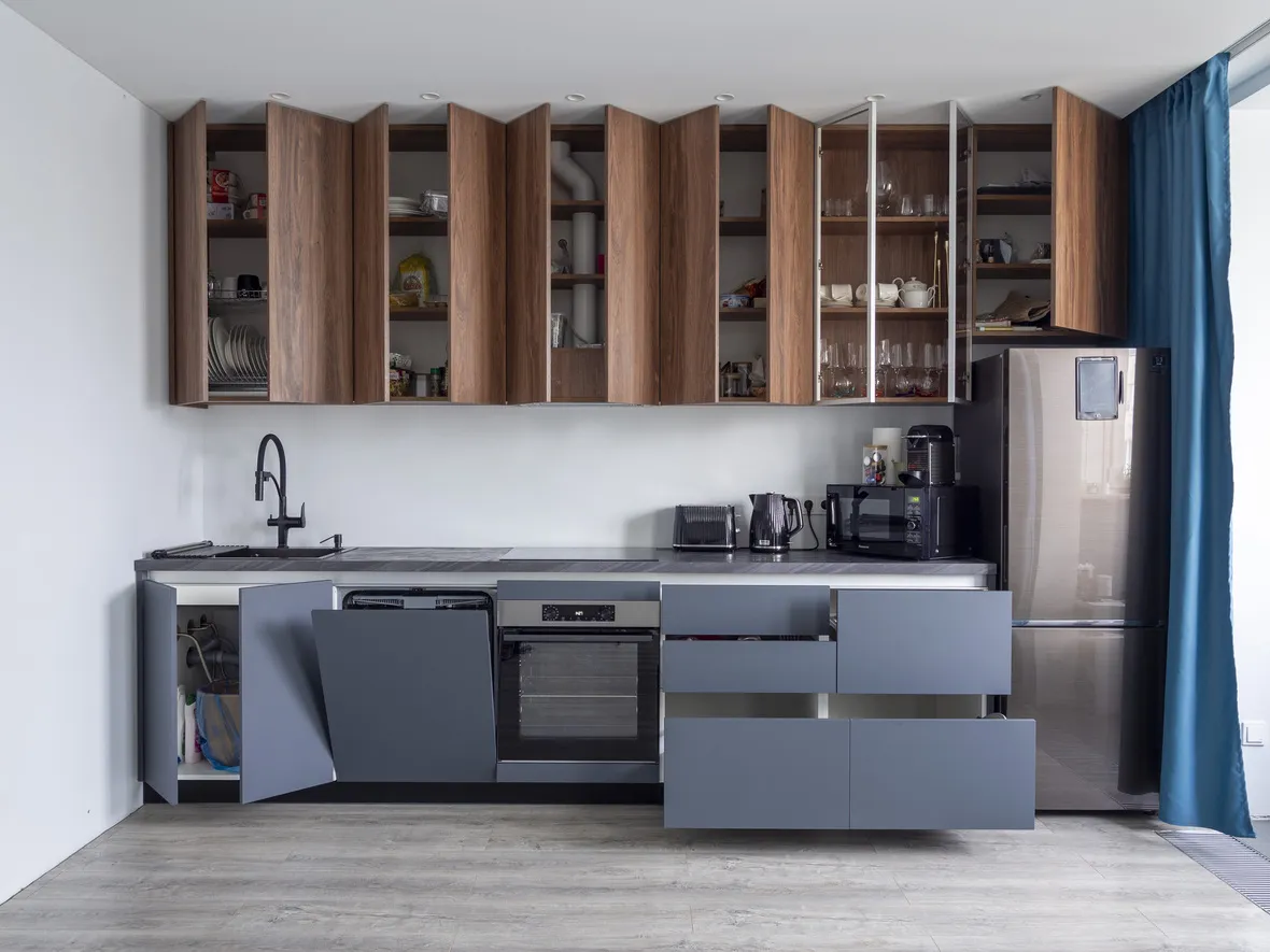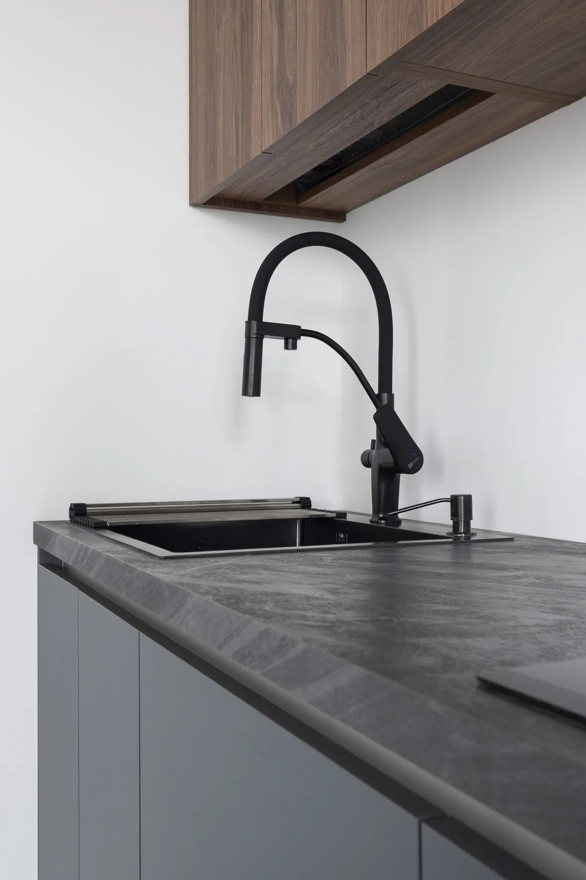 Фасад: Акрил-5 в цвете Темно-серый, Тимбер в цвете Марон